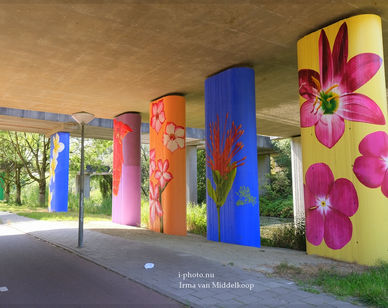 𝑨𝒓𝒄𝒉𝒊𝒕𝒆𝒄𝒕𝒖𝒖𝒓-𝑪𝒖𝒍𝒕𝒖𝒖𝒓-𝑵𝒂𝒕𝒖𝒖𝒓 𝒕𝒓𝒊𝒑 Een afspraak met een vriendinnetje in Muiden was een héle goede reden om er een paar dagen met de fiets op uit te trekken. Begin en bijna eindpunt Amsterdam. Niet-toeristische knooppunten aan elkaar geborduurd. Amsterdam-anders. Over Mokumse kades. De Veem-, Oostelijke Handels-, Erts-, Panama-, Stuurman-, Borneo-, Entrepot-en Zeeburgerkade. Nieuwbouw, diverse soorten boten om in te wonen, tot woning omgebouwde pakhuizen , leuke terrasjes. Ergens rechtsaf en opeens reed ik over een dijkje langs het Amsterdam Rijnkanaal. Door Diemen richting Amsterdam Zuid Oost op zoek naar Heesterveld. Had achteraf véél eenvoudiger gekund als ik behalve de fietsrouteplanner Google maps erbij had gepakt. Zat namelijk direct naast station Bullewijk. Maar ja, dan had ik geen verdwaalpaden gehad en veel gemist. Heesterveld dus. Nog nooit van gehoord, maar op internet leek het leuk, en dat was het! Een zeer kleurrijk wijkje met een énig multiculti restaurantje genaamd ‘oma Ietje’. Mijn lunch in de gezellige met parasols overdekte tuin was een zeer pittig, heerlijk Koreaans stoofpotje. Kijkje genomen bij nieuw-héél-hoog-bouw, toen rechtsaf, linksaf en weer midden tussen de landerijen. Door pittoresk Driemond en zo reed ik Weesp in. Ingecheckt in lekker leuk kneuterig hotelletje. Op een terrasje met een klein ijskoud biertje luisterde ik naar een muzikaal optreden van vier aanstaande brugpiepers. Toen het was afgelopen, bleven ze buigend op hun plek staan. Een donatie in de gitaarkist gegooid en heb ze aangeraden in het vervolg met de pet rond te gaan. De pet moet nog aangeschaft worden, maar ze waren niet voor één gat te vangen. Een schoen (nieuw hoor mevrouw, hij stinkt nog niet) werd gebruikt voor de collecte! Ze zijn aan het sparen voor een nieuw keyboard. Mensen zonder cash op zak, pinden bij de bediening Tijd om over – naar wat bleek- een opgebroken weg - gedóe! - naar Muiden te fietsen en bij vriendinnetje in de tuin neer te ploffen. Dat was supergezellig en ik ben node opgestapt, omdat ik, zeker met die rotweg, vóór donker terug in Weesp wilde zijn. De volgende ochtend, maandag, was ik al bijtijds wakker. Geen koffievoorzieningen op de kamer. Hmmm… Bij receptie gevraagd of ik koffie kon bestellen. Mocht ik, ondanks dat ik geen ontbijt bijgeboekt had, gewoon pakken. Daar was ik héél blij mee! Aangezien ik pas om 11 uur hoefde uit te checken, heb ik een heerlijke wandeling (voet hield het goed) door stil Weesp gemaakt. Alleen bij de bruggen was het al druk met bootjes. Deze dag een vooral-natuur route. Langs riviertje Smal Weesp kwam ik in Nigtevecht terecht. Daar vaart een potje over de Vecht naar Nederhorst den Berg. Ik hoefde nu niet over, maar ben wel even blijven kijken. Een paar jaar geleden kwam ik vanaf de andere kant. Tot mijn verbazing nog steeds dezelfde schipper. Het was rustig en daardoor de tijd om even te praten. Ik vertelde haar dat ze toen de pont in het midden van de Vecht even stil had gelegd, zodat ik in alle rust een foto kon maken. Zo leuk! Een stukje verderop moest ik het Amsterdam-Rijnkanaal over. Een hele hoge, best enge, maar wel hele gave brug! In de fotoreeks is goed te zien hoe de brug ‘slingerend’ omhoog gaat. Met as usual bibberende knieën, maar door de hoge hekken aan de zijkanten durfde ik in het midden van de brug toch af te stappen en rustig om me heen te kijken naar het vaarverkeer. De weg vervolgend kwam ik bij Fort Nigtevecht, onderdeel van de Stelling van Amsterdam. Niet open, maar ik kon er wel een stuk omheen lopen. En weer verder langs watertjes en over dijkjes. Zwaluwen scheerden over het riet en water. Verder was het heel stil; kwam haast geen mens tegen. Had het echt drukker verwacht met het mooie weer. Riviertje de Gein met in een bocht een molen. De Oostzijde molen, maar blijkbaar bekender als de Mondriaanmolen, omdat de schilder de molen wel vijfentwintig keer geschilderd heeft. Grappig weetje! Volgende halte: Abcoude. Pauzetijd op schaduwrijk terras van een leuk restaurant. Vervolgens prachtig landelijk – ontmoeting met een fazant, een haas en twee zwijntjes – via Baambrugge naar Vinkeveen gereden. Ik kwam langs gênant grote huizen met enorme hekken en rotjochies op fatbikes die het leuk vonden mijn kant op te sturen om te laten schrikken. Tja. Langs riviertje de Waver kwam ik in Ouderkerk aan de Amstel. Langs de terrassen kunnen bootjes worden aangelegd. Het lag bomvol. De opvarenden van een enigszins opzichtig jacht waren nogal teleurgesteld dat ze hun schuitje niet pal voor Loetje konden aanmeren. En já: eindelijk terrastalk!!! Lachwekkend en tenenkrommend. Daar komt-ie! ‘We moeten wel allemaal dezelfde language spreken’; ‘traject in zeven weken vanaf scratch gedraaid’; ‘Kan een twister maken en goed kwalificeren, maar als ik niet goed in de wedstrijd zit, ga ik met kid op stap. Dat is betere time spend’. Gatver. En ja: twee kerels. 𝕍𝕖𝕣𝕧𝕠𝕝𝕘: Nog maar een klein stukje te gaan tot mijn volgende verblijf: het gekke blauwe hoge ronde Fletcher hotel in Amsterdam Zuid Oost. Dat was zó gaaf!! Ik had een kamer op de twaalfde verdieping. Met een ronde glazen douchecabine middenin de kamer! Restaurants op 17e en 18e. Té leuk! Bediening was minder. Kwam waarschijnlijk door het ronde. Dan ben je snel uit zicht. Heb heel lang moeten wachten eer er iemand kwam. Ben meerdere keren zelf maar naar de bar gelopen. Dat viel wat tegen, maar ach, ik had geen haast en verder was het leuk! Dinsdag. De dag van terug naar huis. Tot mijn verbijstering was de hele weersverwachting op z’n kop gezet. Régen; duh, er werd notabene régen verwacht. Niksnietgeen jack mee natuurlijk. Gelukkig bij Holendrecht een klein winkelcentrum met, je verwacht het niet hè, een Action!! Een poncho was snel gekocht. Niet nodig gehad. Ondanks ‘waarschuwingen’ van lieverds om me heen, toch weer door de Bijlmer. L